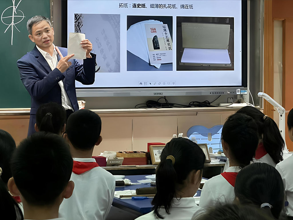 10月20日,浙大艺术与考古博物馆“游于艺”团队走进上海市闸北田家炳小学,为四、五年级80余名师生带来两场沉浸式艺术体验课。以越窑青瓷堆塑谷仓罐和传统拓印技艺为切入点,孩子们通过黏土手工和拓印实践,亲身感受传统文化魅力。