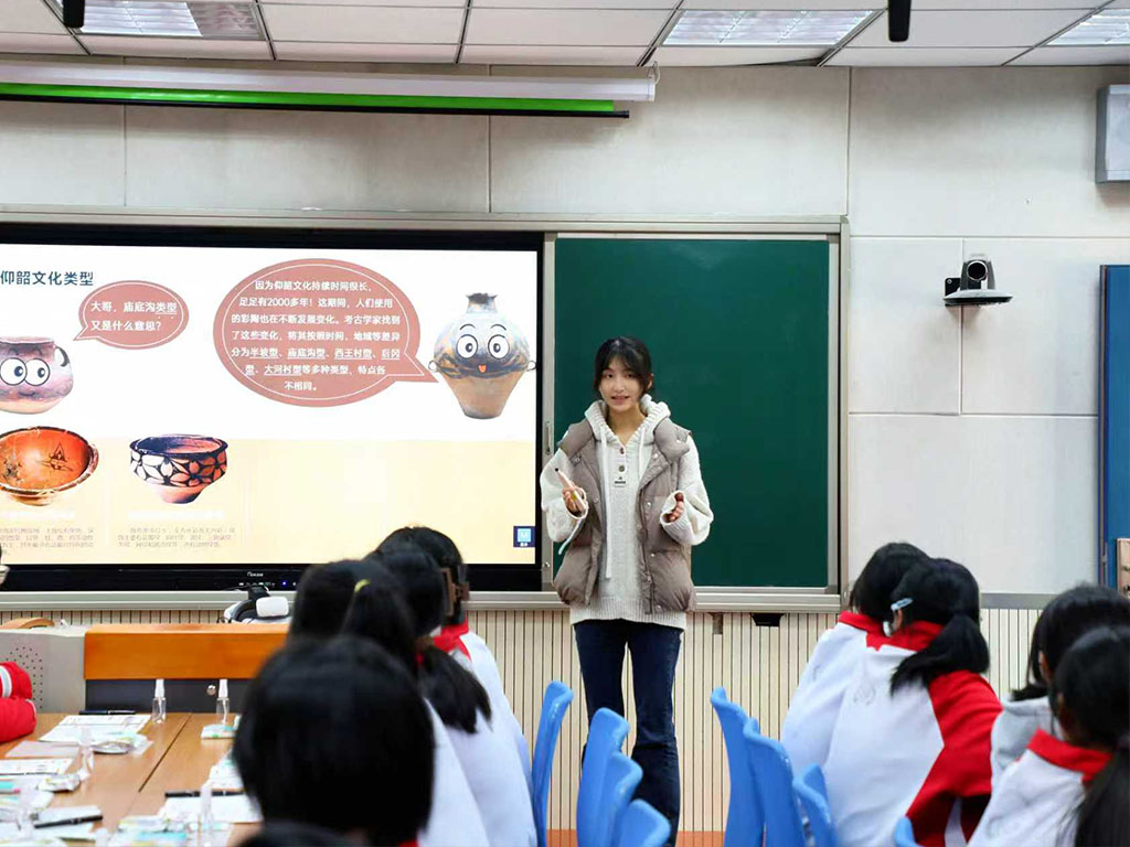 11月19日至20日,项目团队赴安徽省六安市田家炳中学,为80余名师生呈现“实物”系列艺术课,涵盖中国史前美术、传统绘画与陶瓷技艺。学生们不出校门,即可借馆藏文物领略中华文化之美,进一步激发美育兴趣。