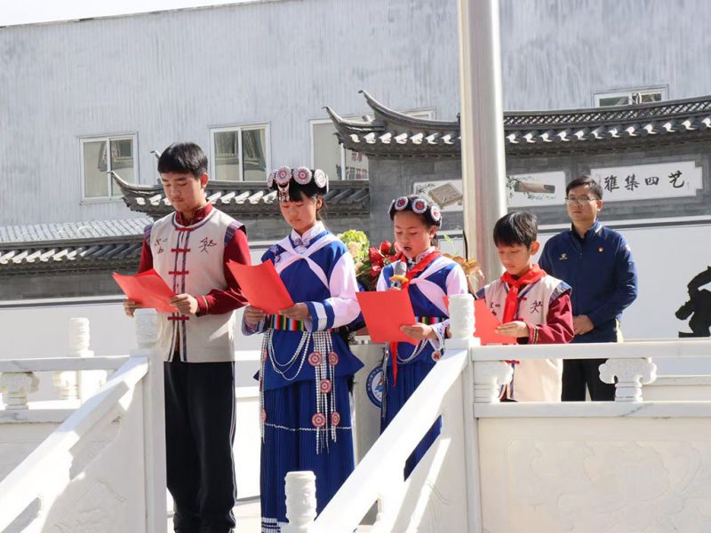 云南丽江市玉龙县田家炳民族中学为田家炳先生铜像揭幕