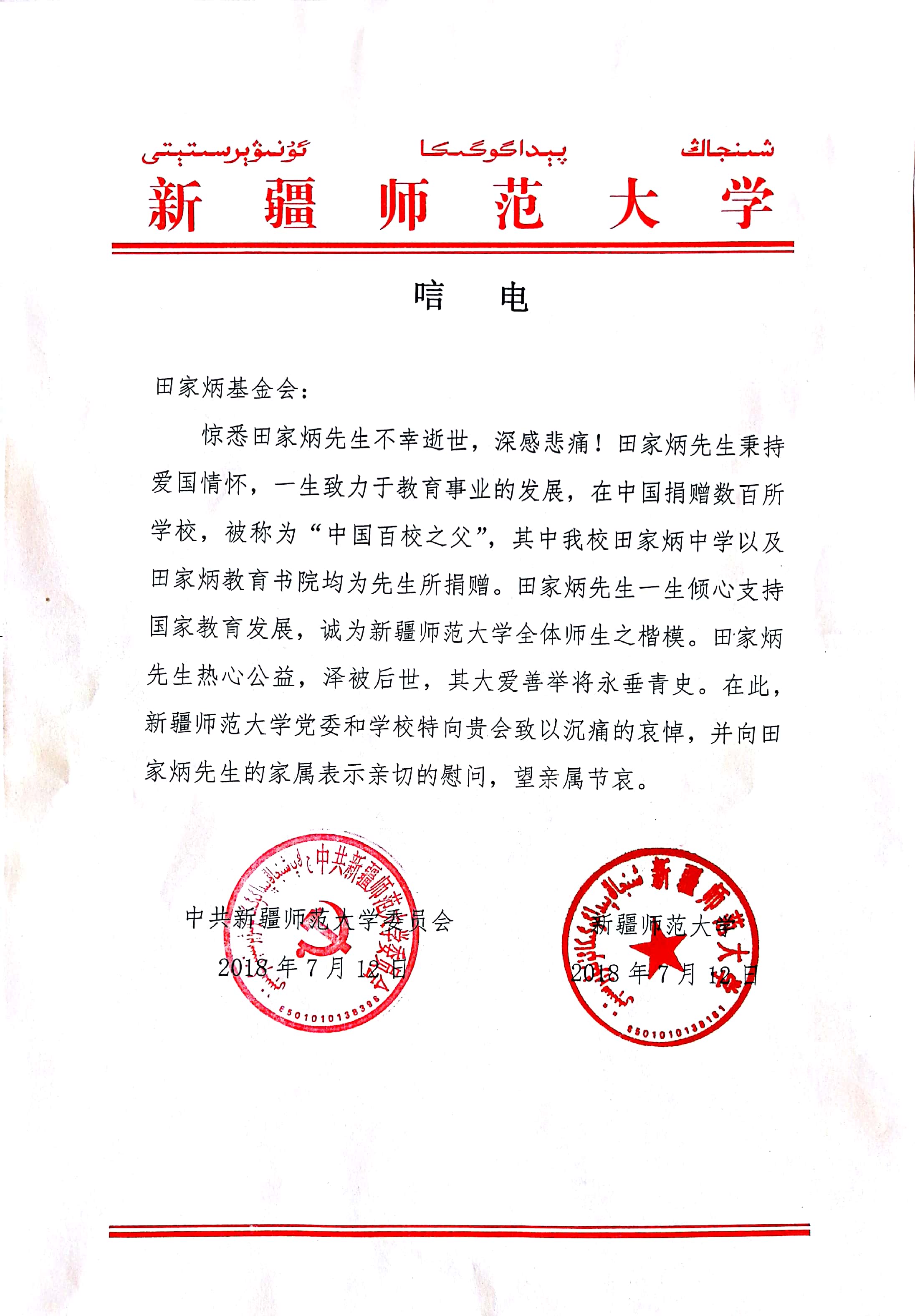 唁電, 大學 |