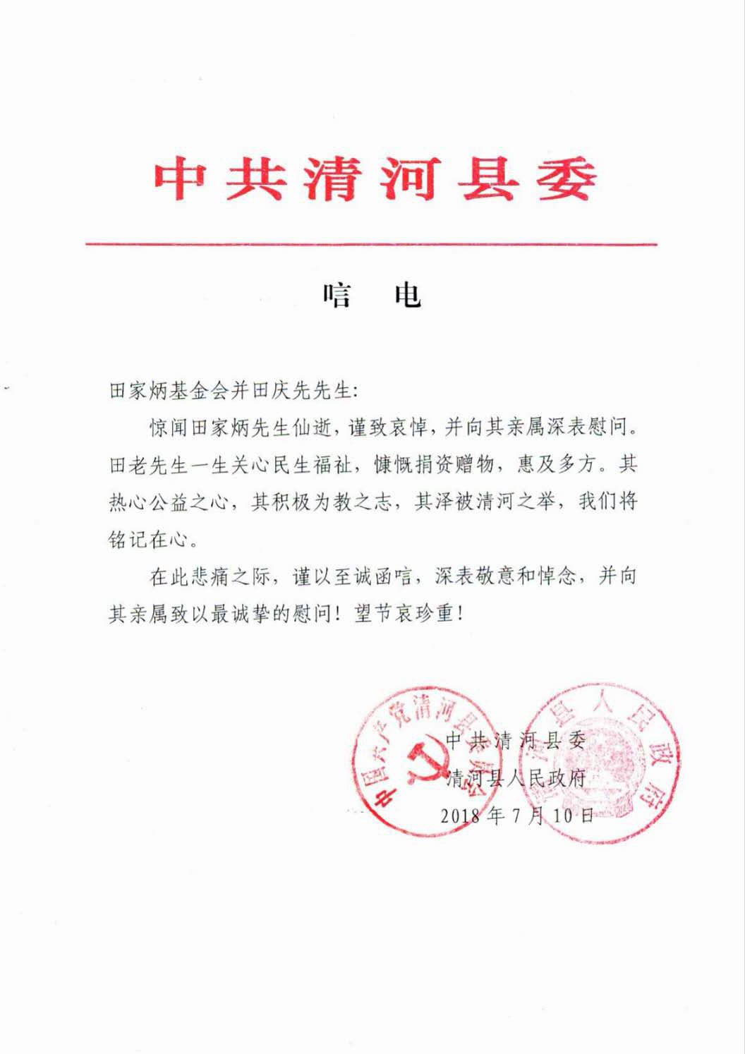 中共清河縣委、清河縣人民政府 |