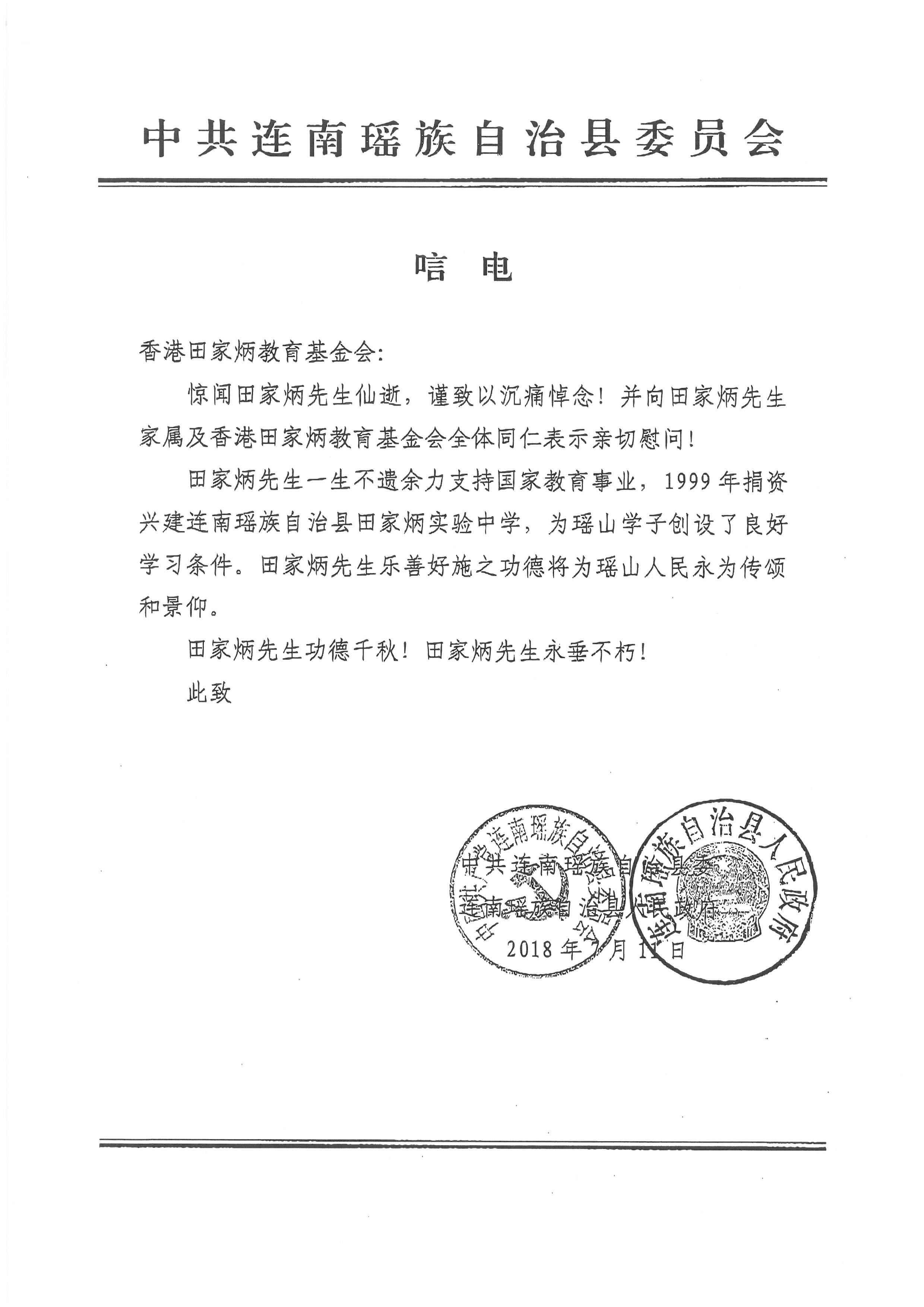 中共連南瑤族自治縣委、連南瑤族自治縣人民政府 |