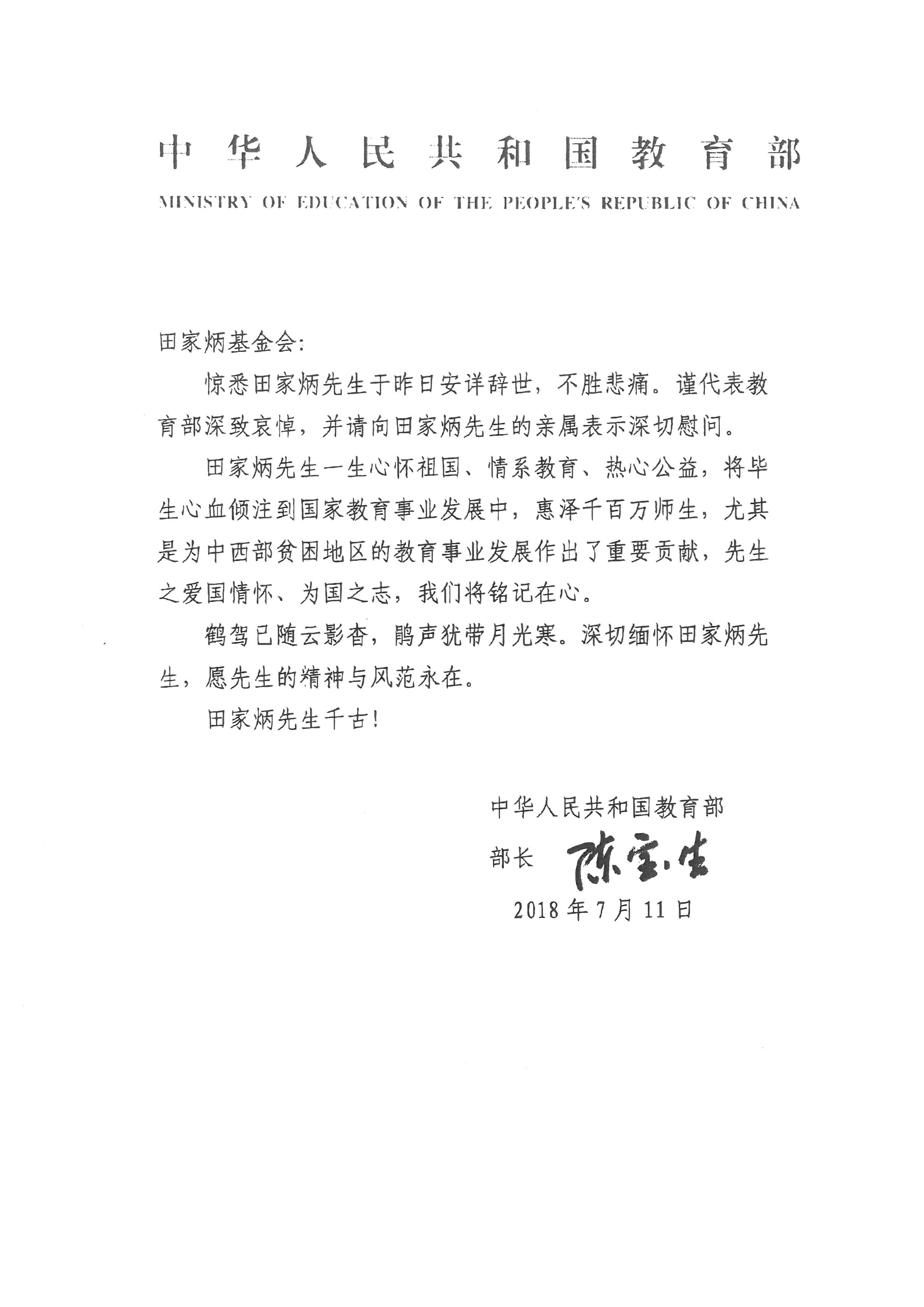 中國人民共和國教育部 陳寶生部長 |
