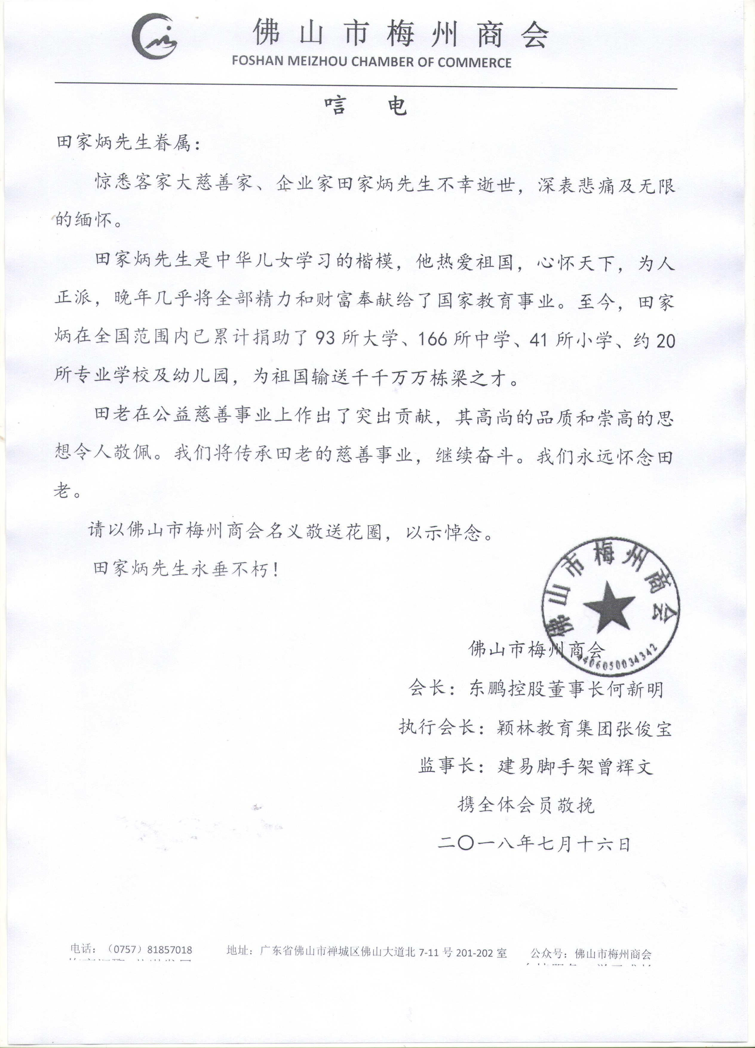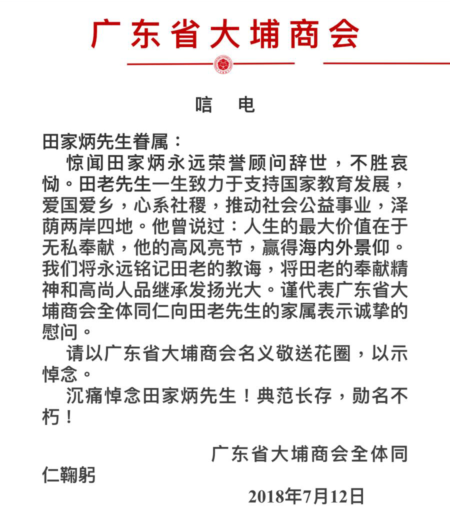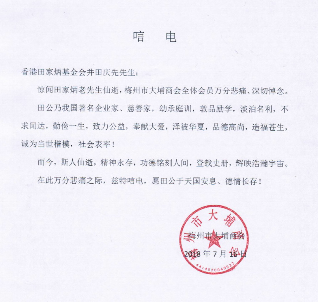 廣東省大埔商會全體同仁 |
