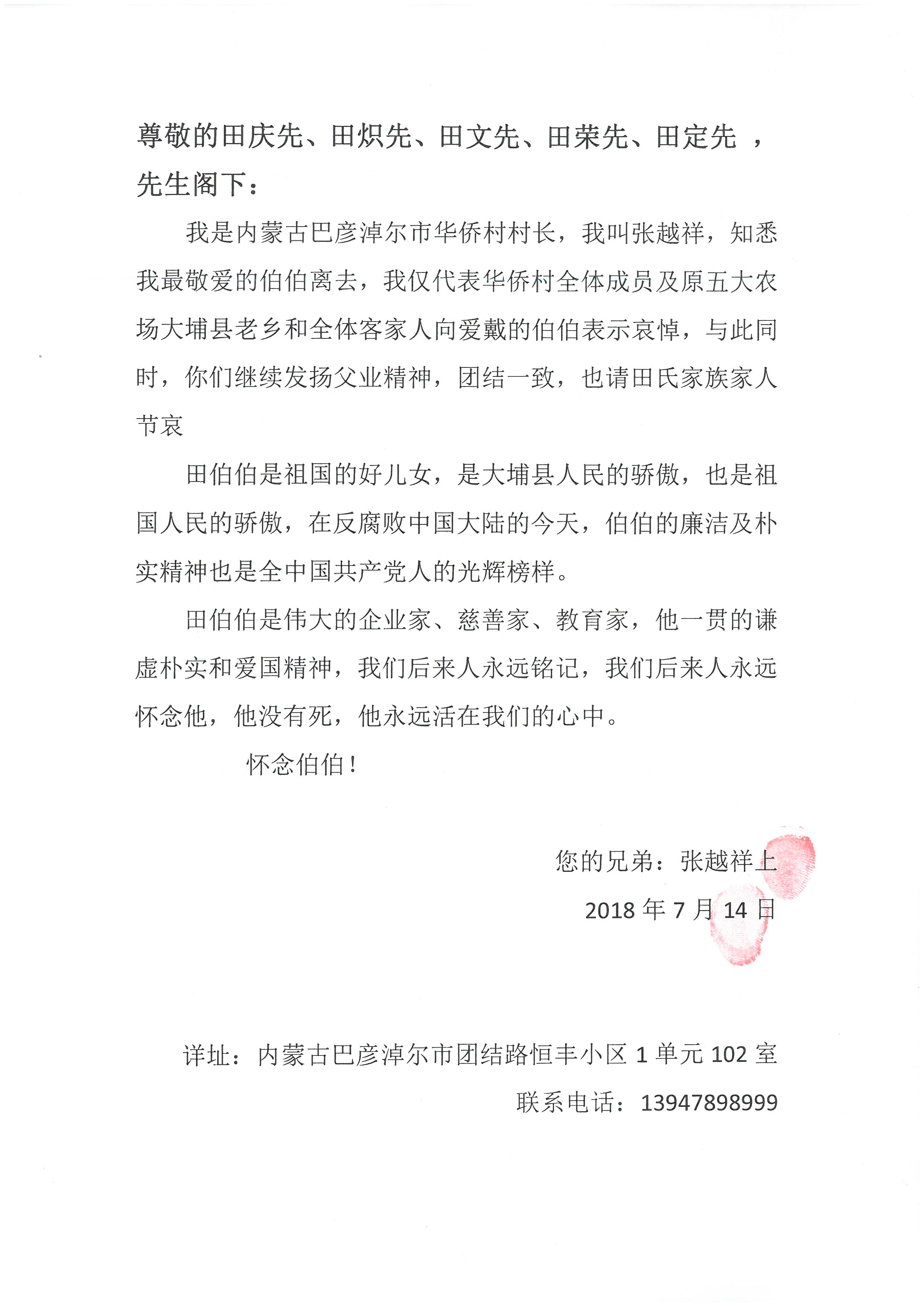 內蒙古巴彥淖爾市華僑村 張越祥村長 |