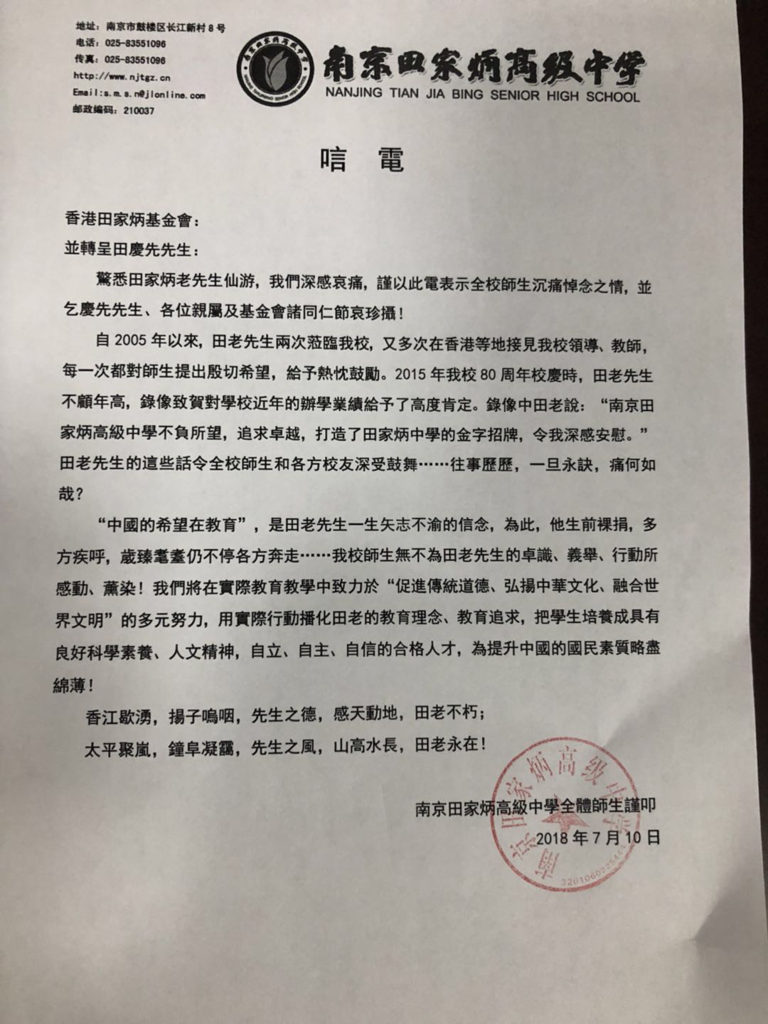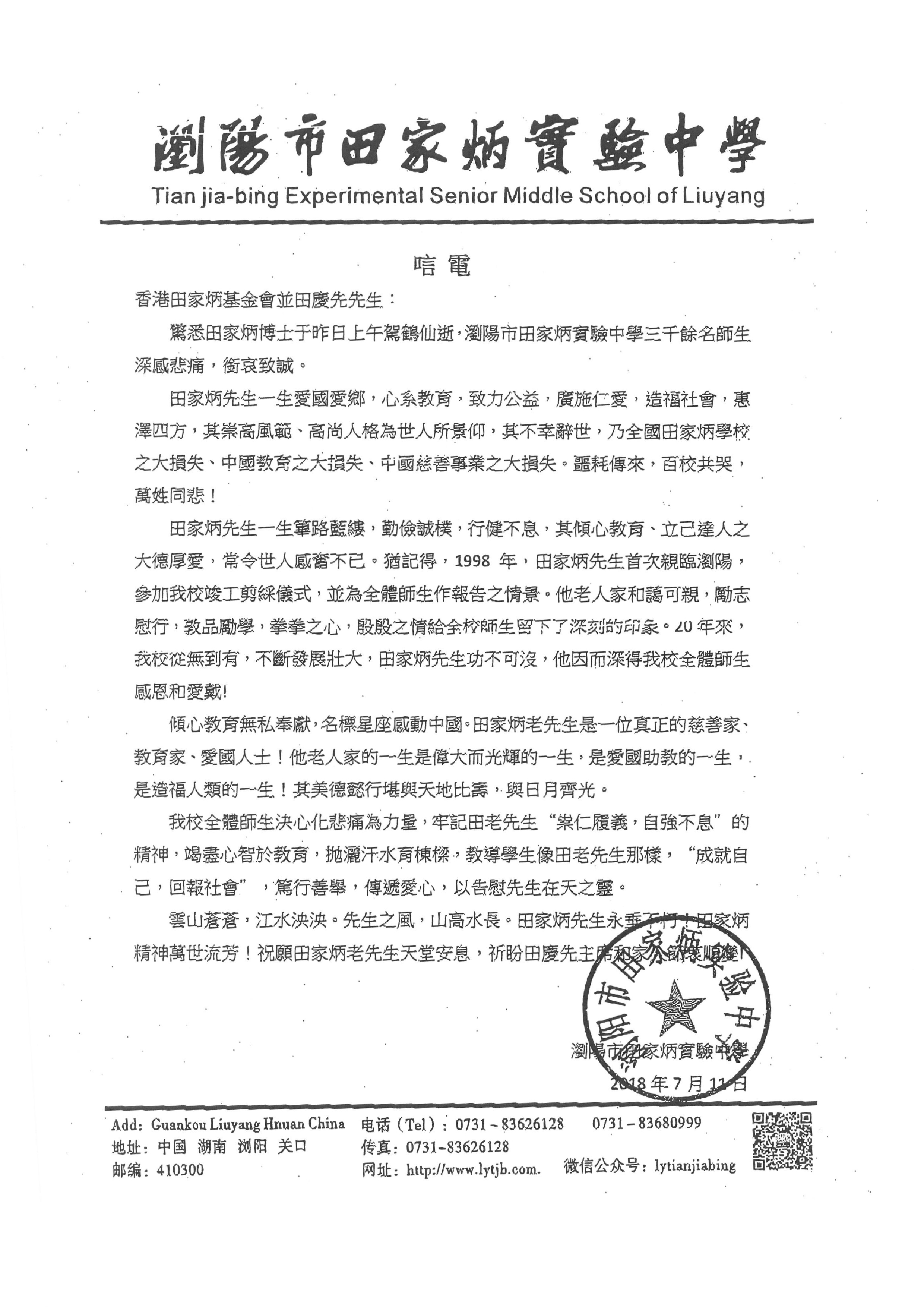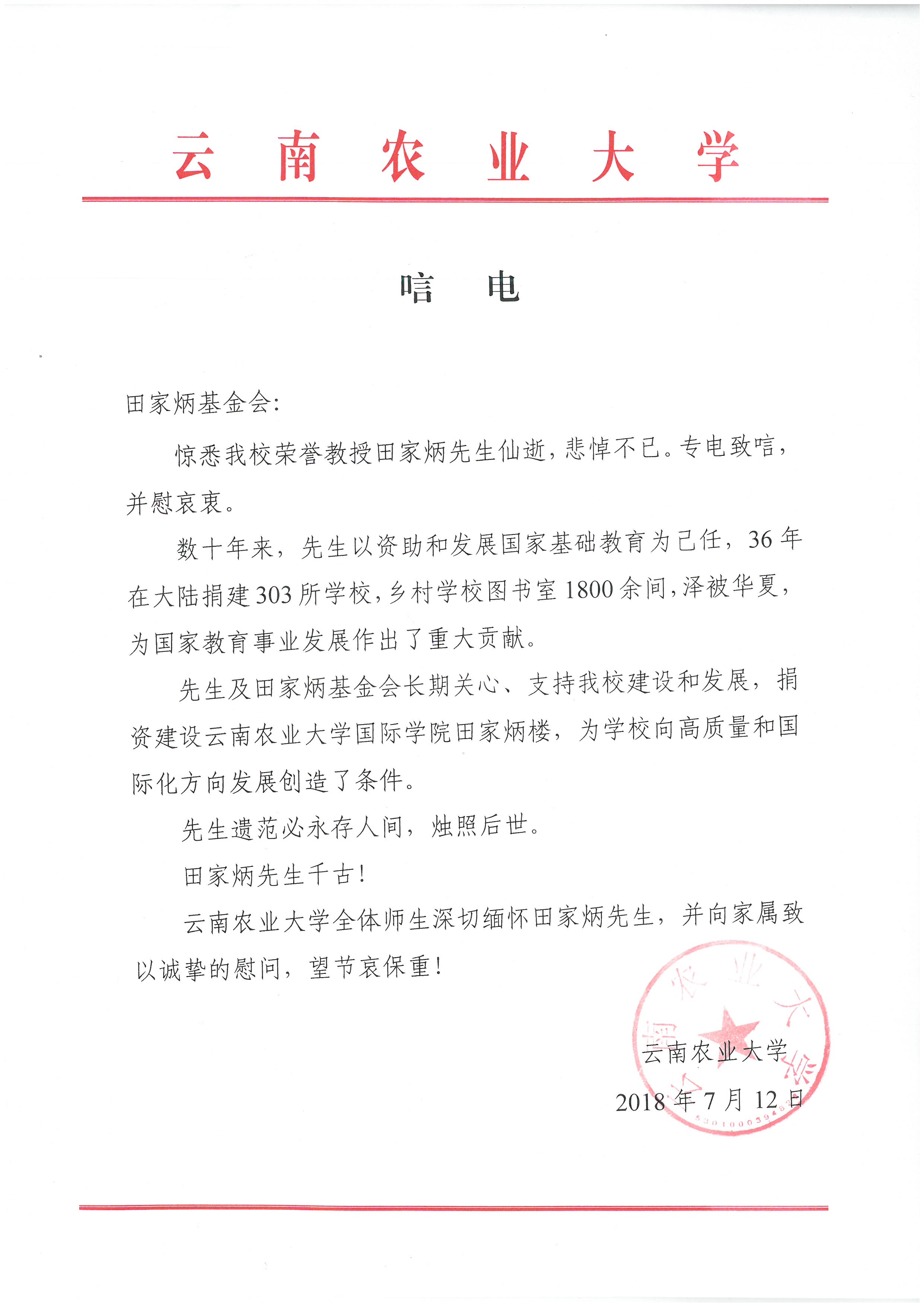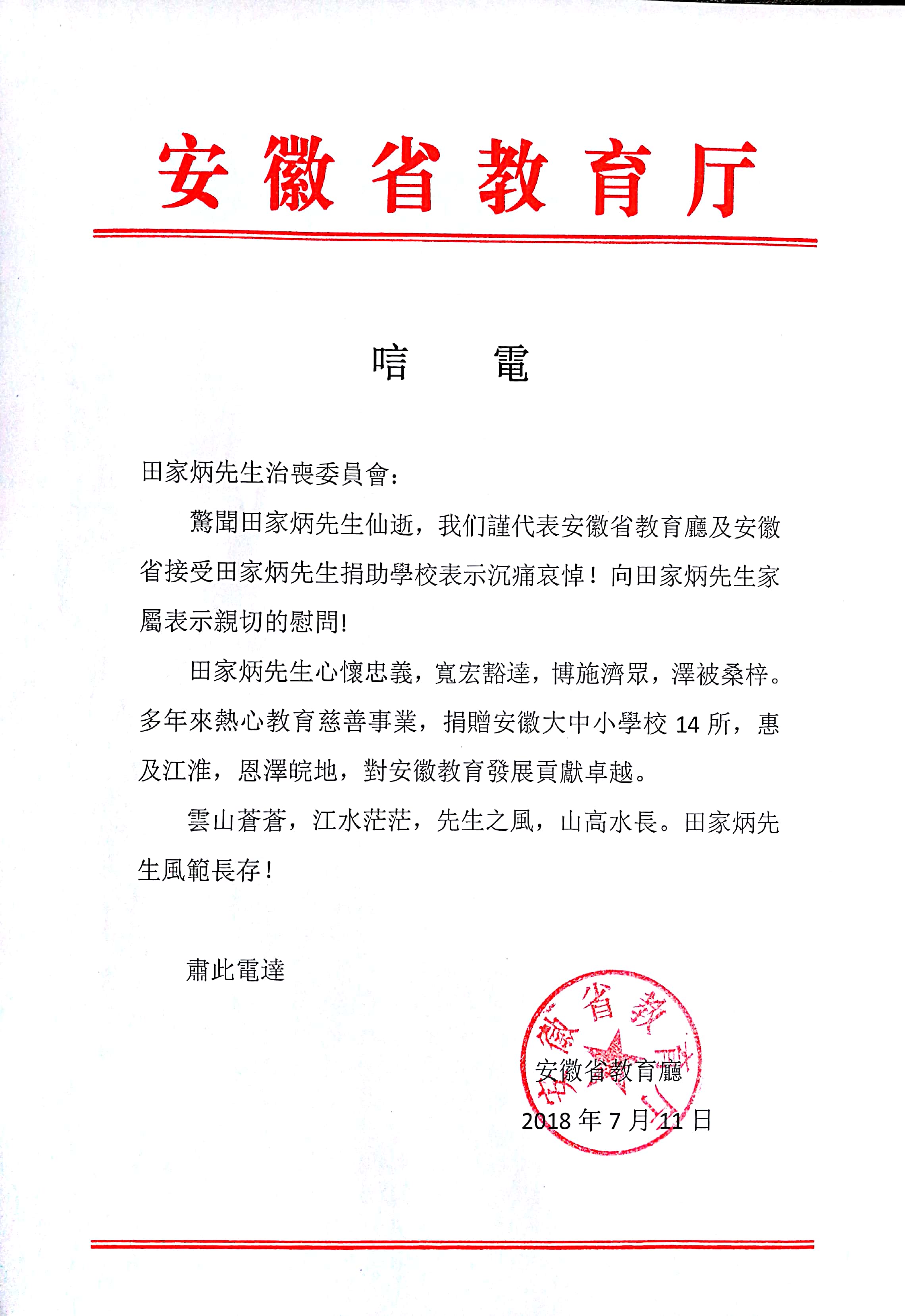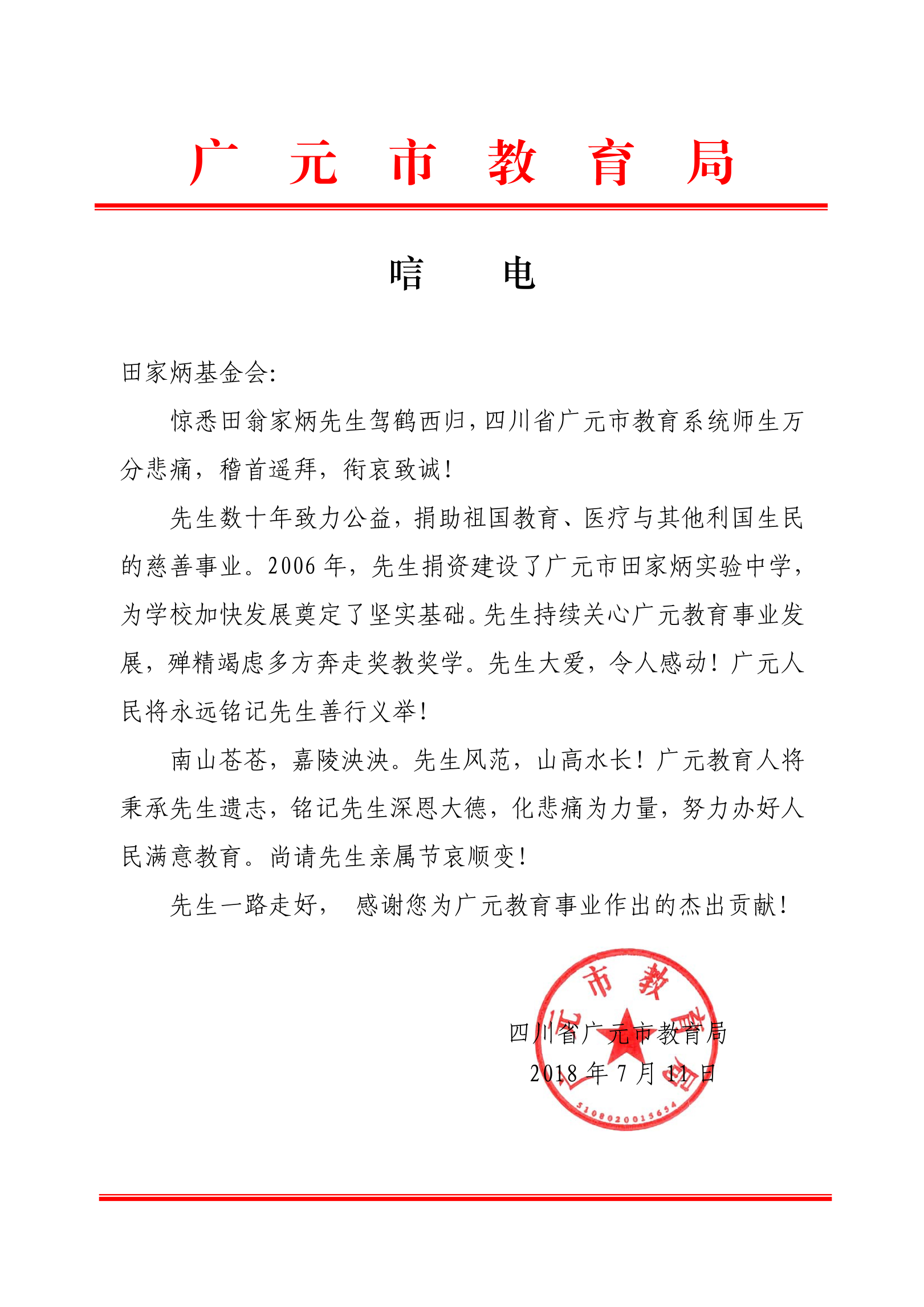 唁電