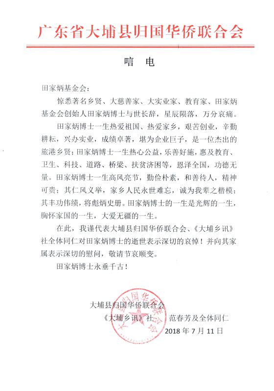 大埔縣歸國華僑聯合會、《大埔鄉訊》范春芳及全體同仁 |