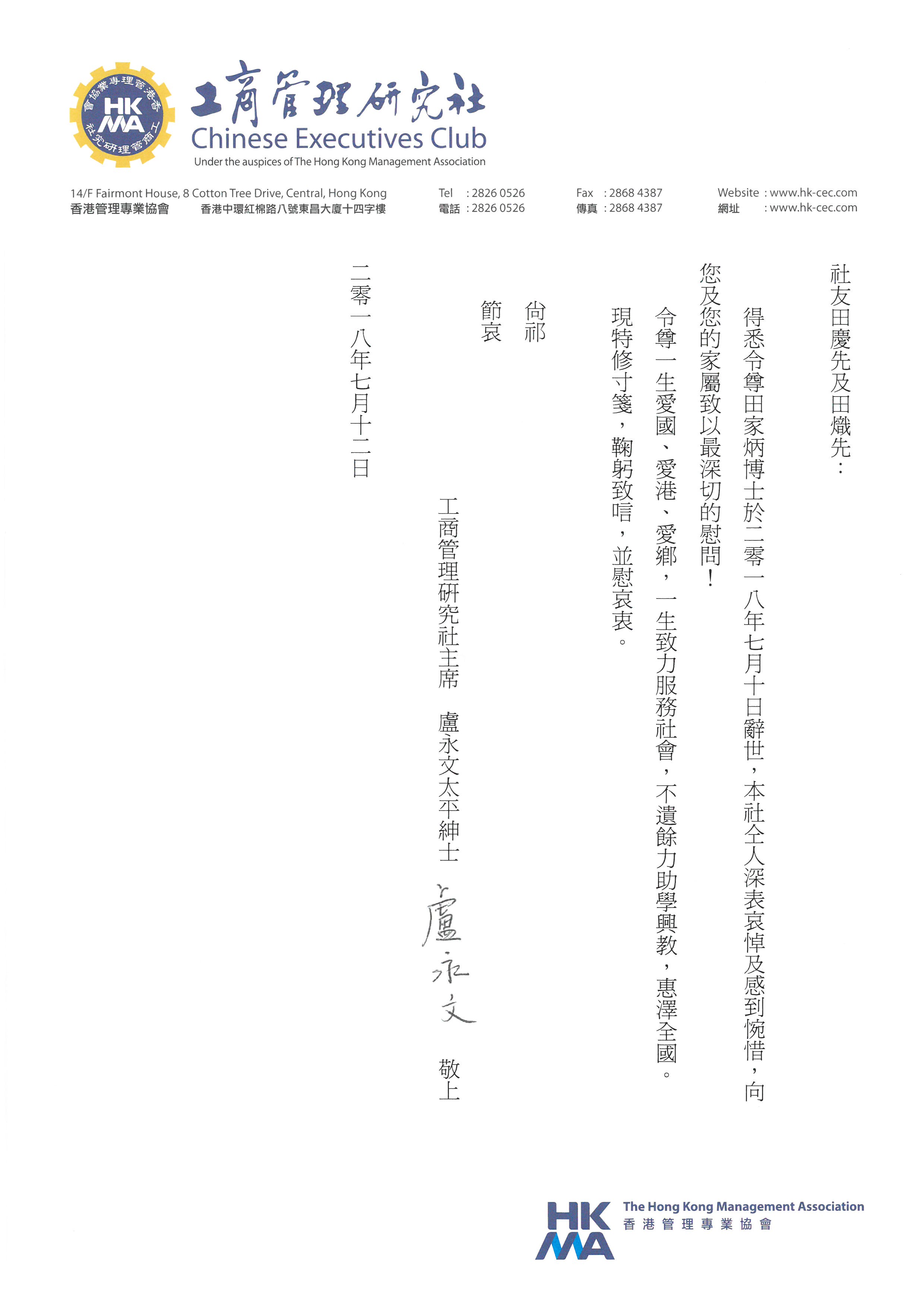 香港梅州總會 會長曾智明 暨全體同仁 |