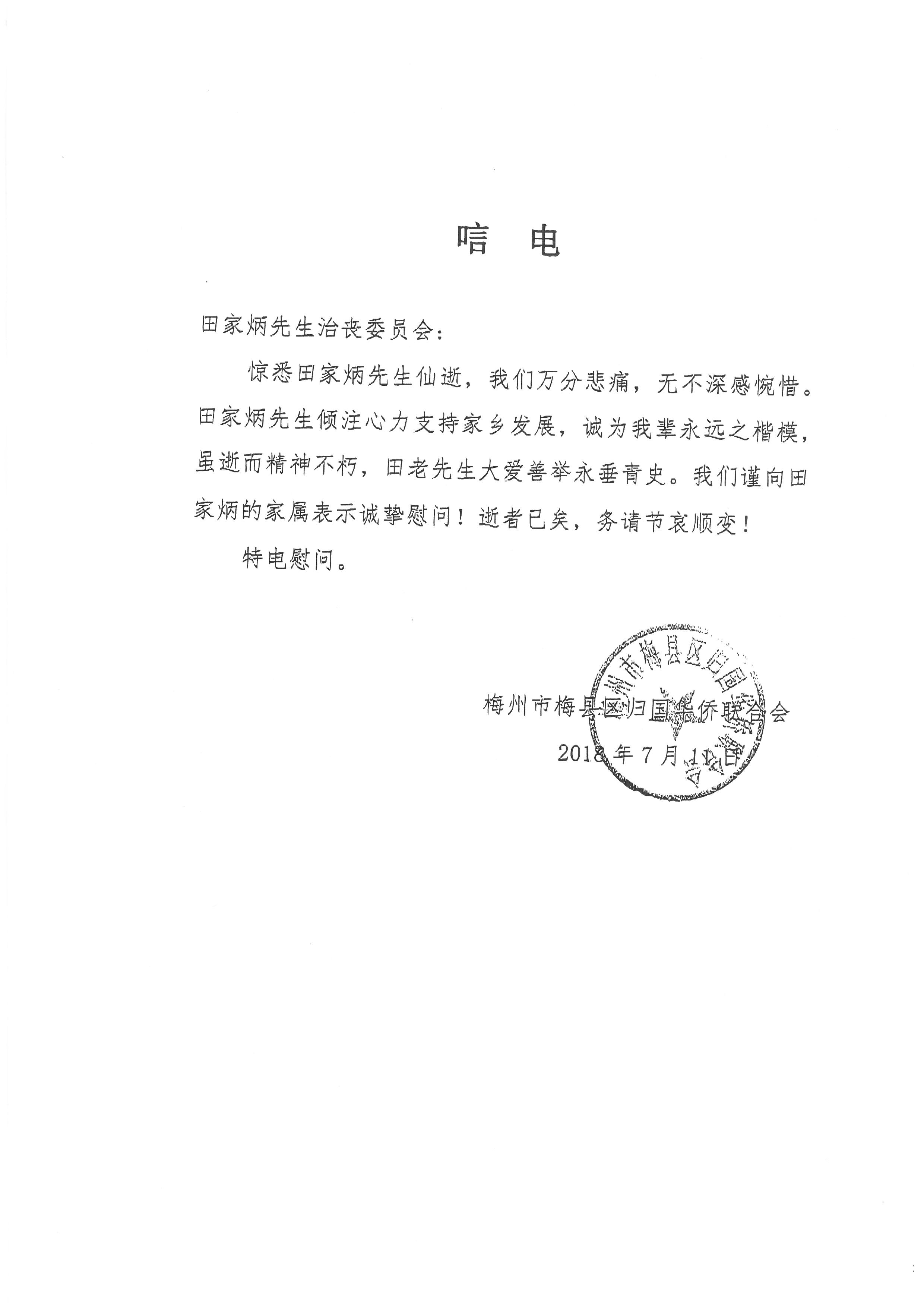 廣東省梅州市歸國華僑聯合會湯志平主席偕全體同仁 |