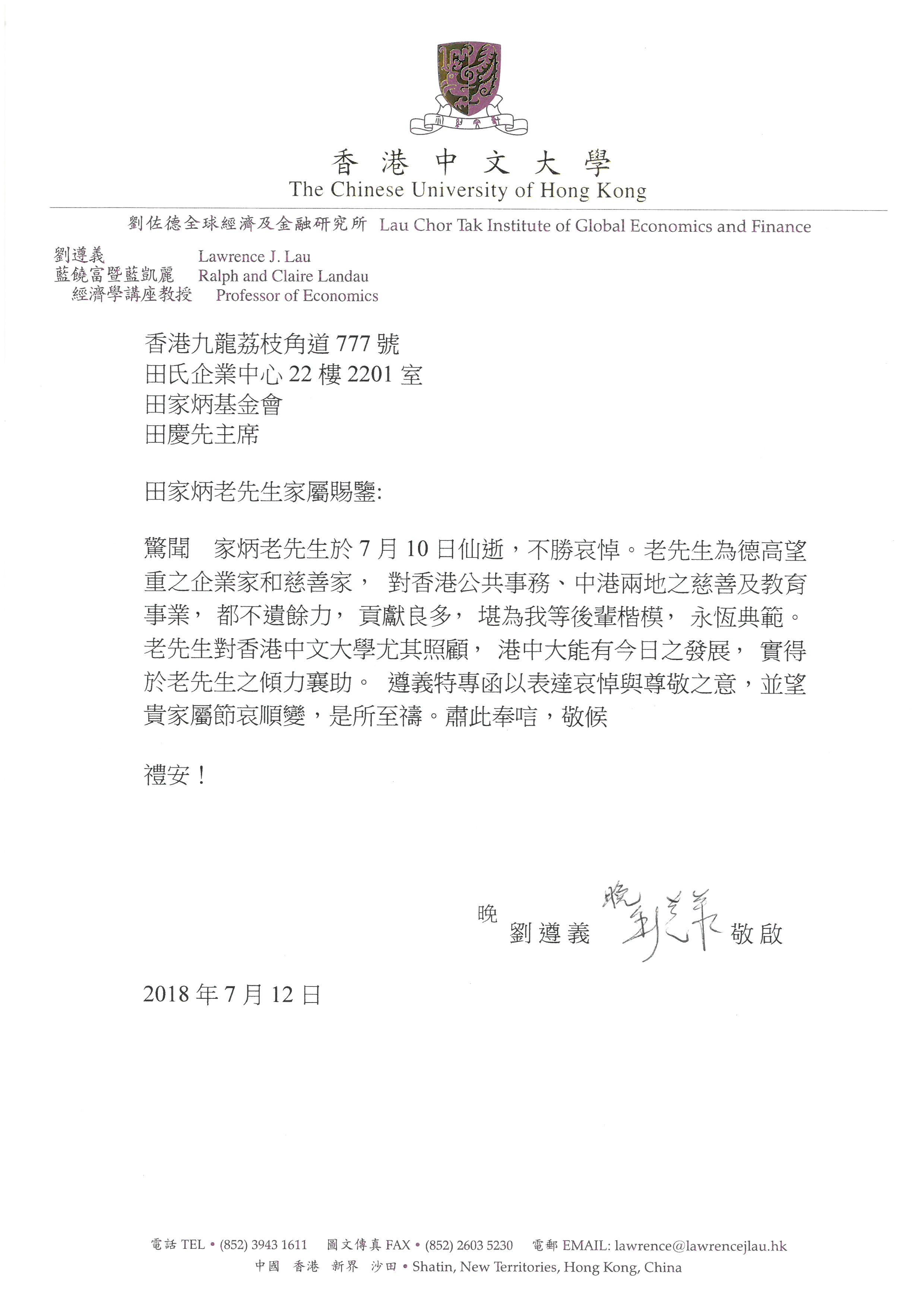 香港中文大學劉遵義 |