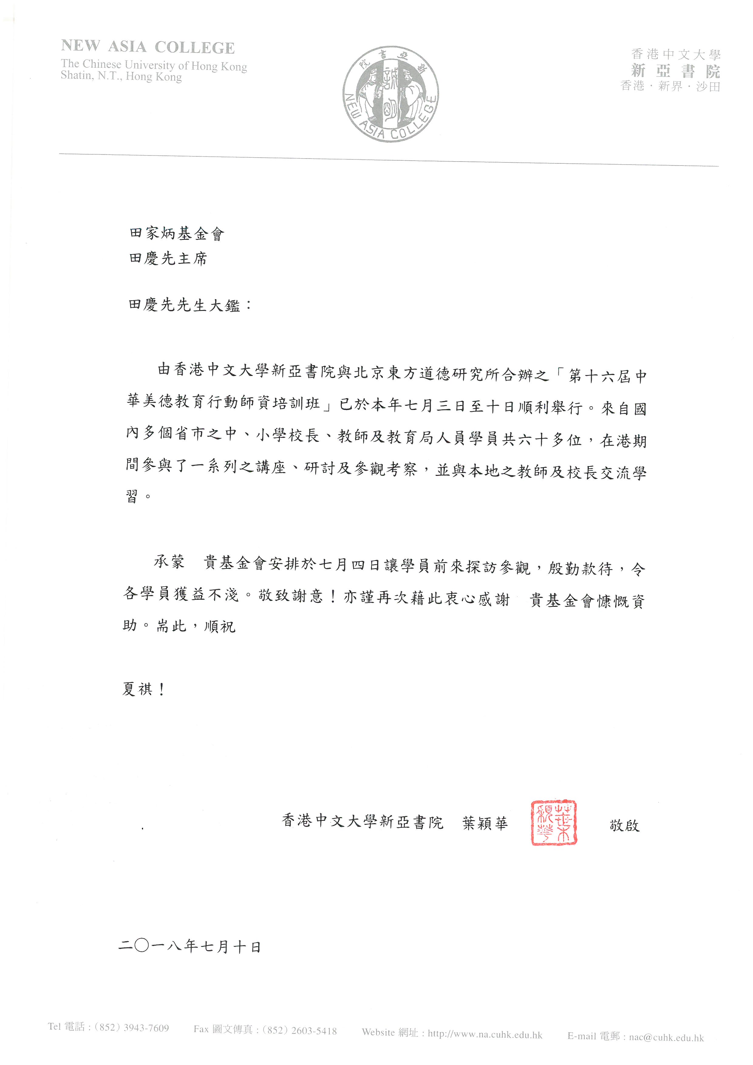 香港中文大學新亞書院葉穎華 |
