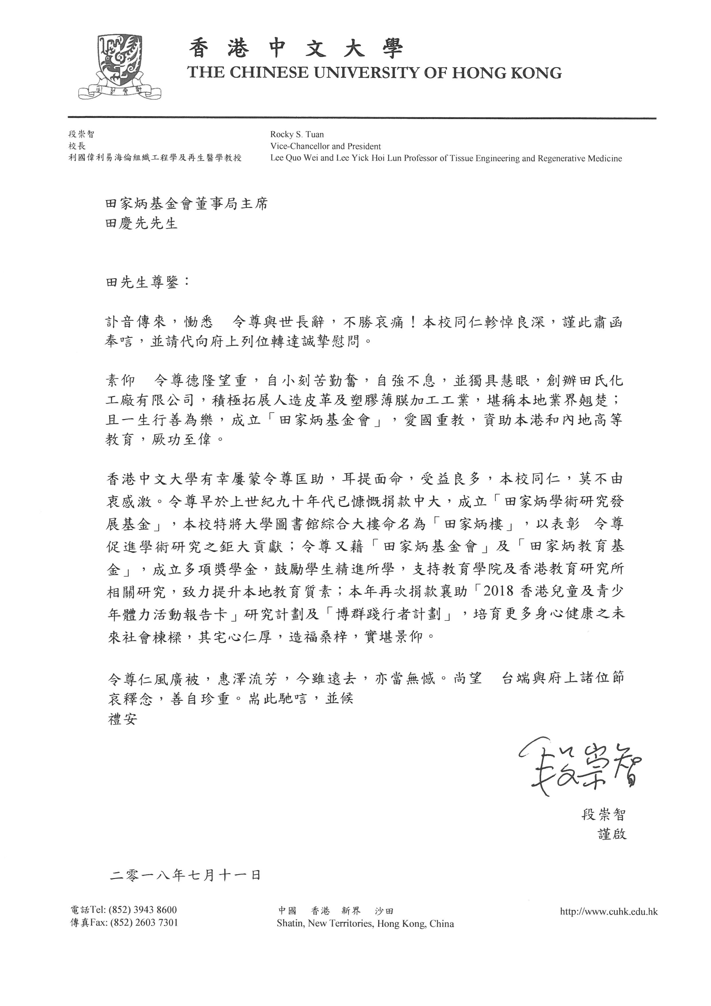 香港中文大學 段崇智校長 |