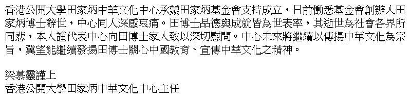 香港公開大學田家炳中華文化中心 梁慕靈主任 |