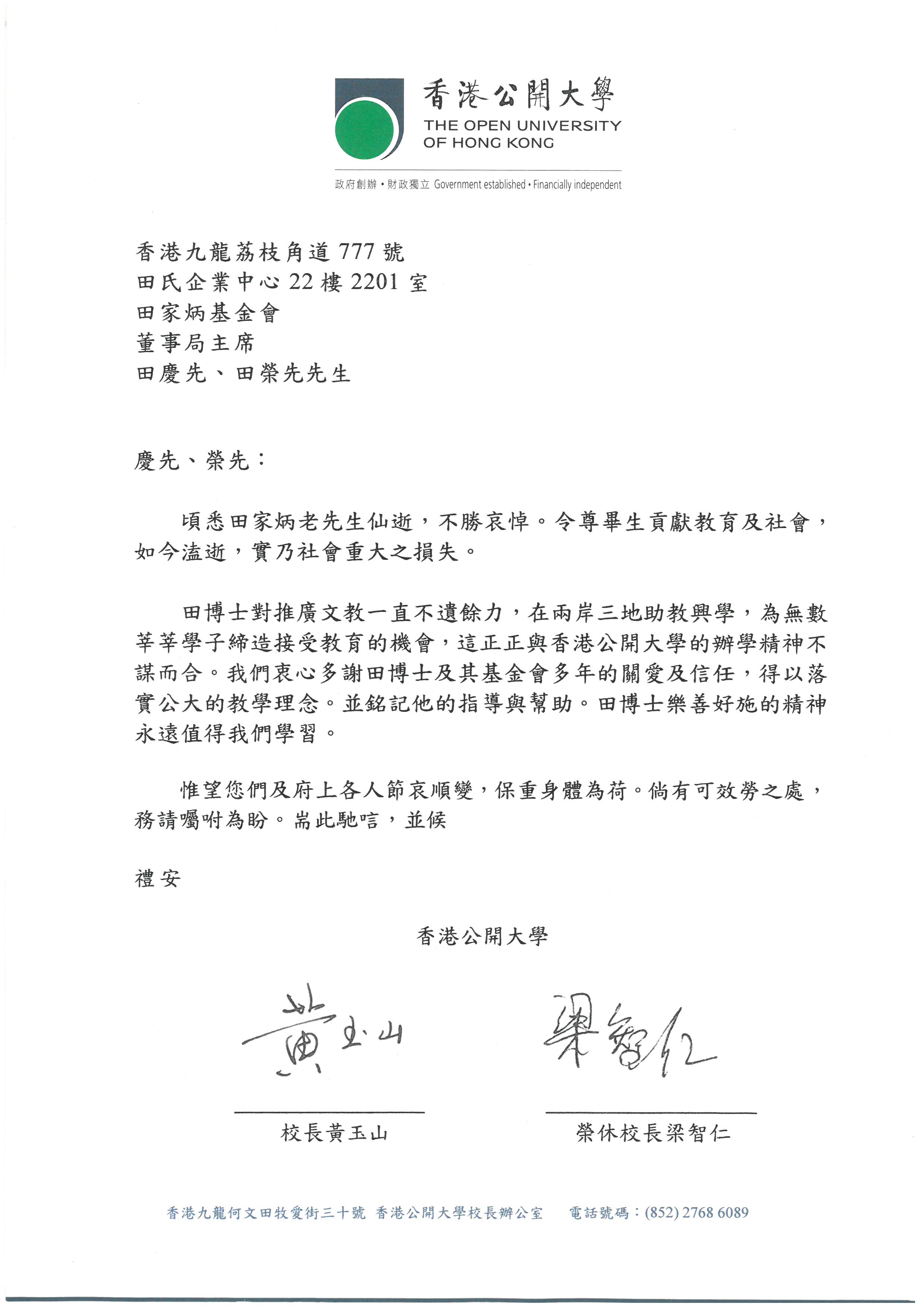 香港公開大學黃玉山校長、榮休校長梁智仁 |
