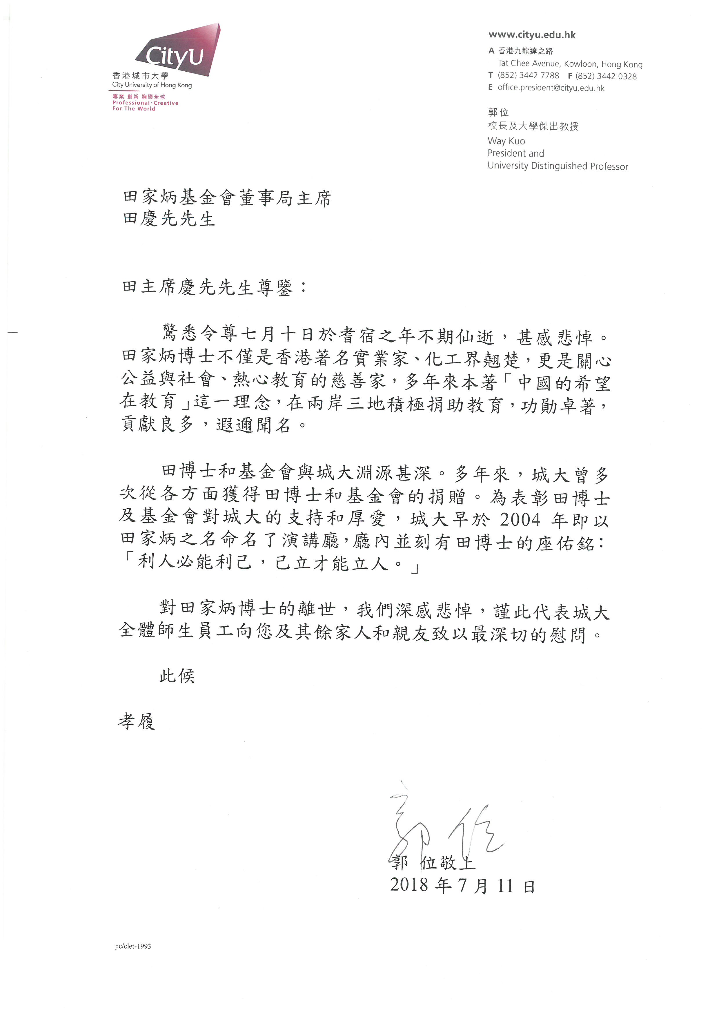 香港城市大學郭位校長 |