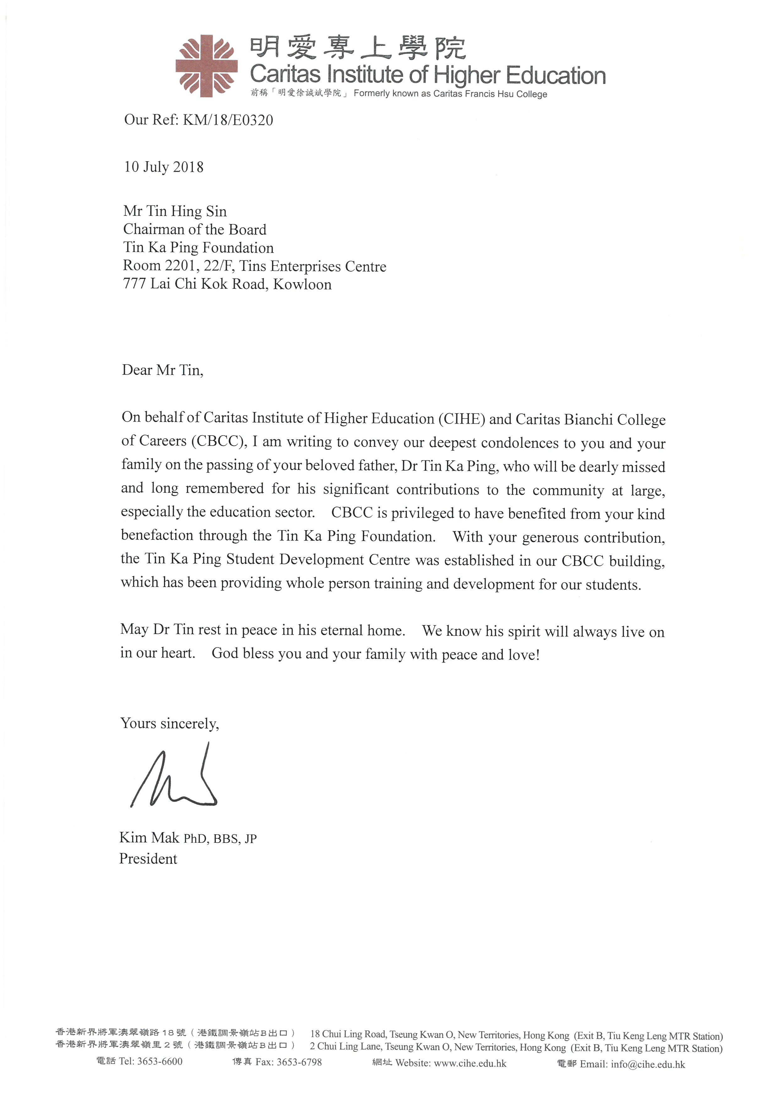 香港明愛專上學院 Kim Mak |