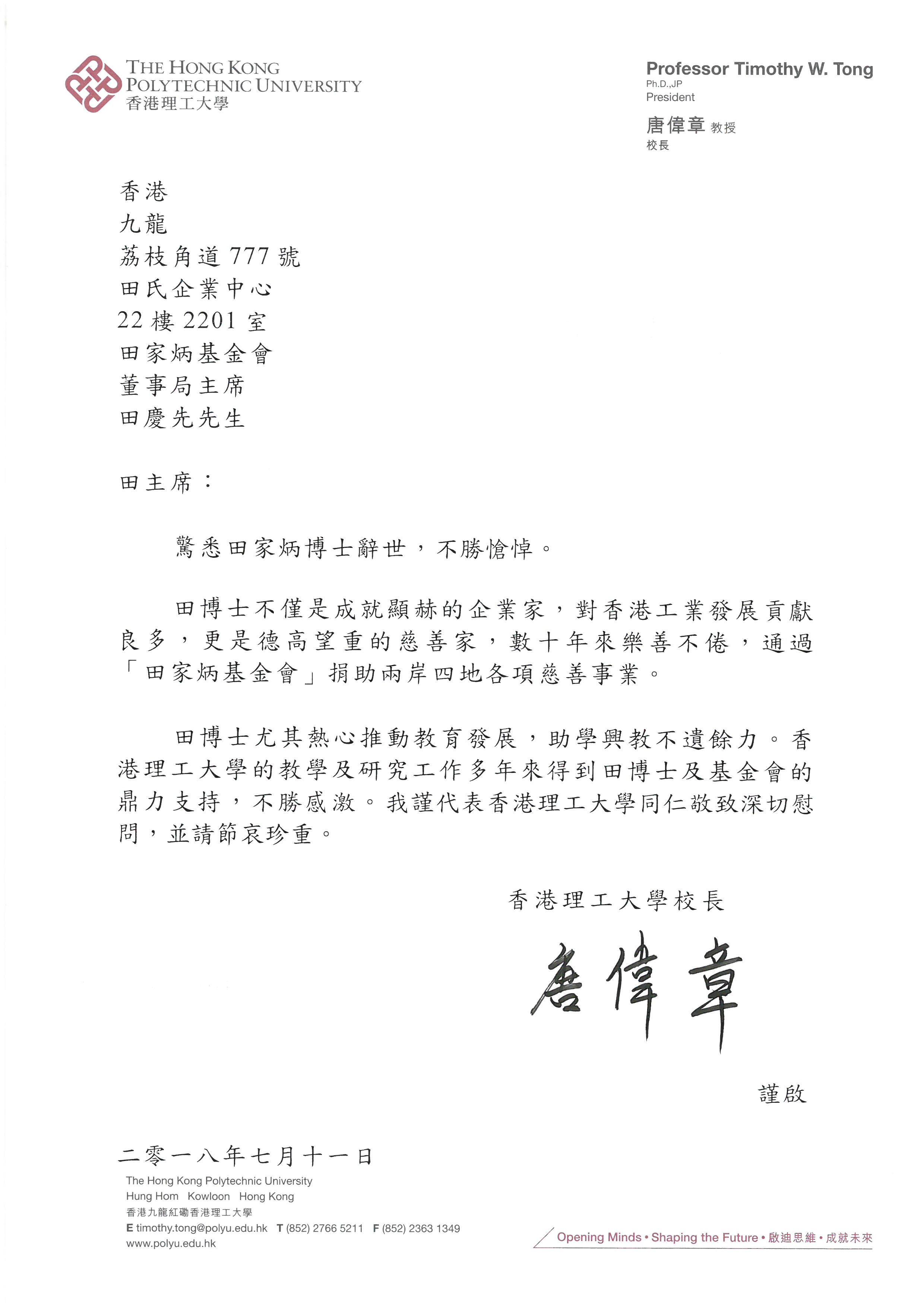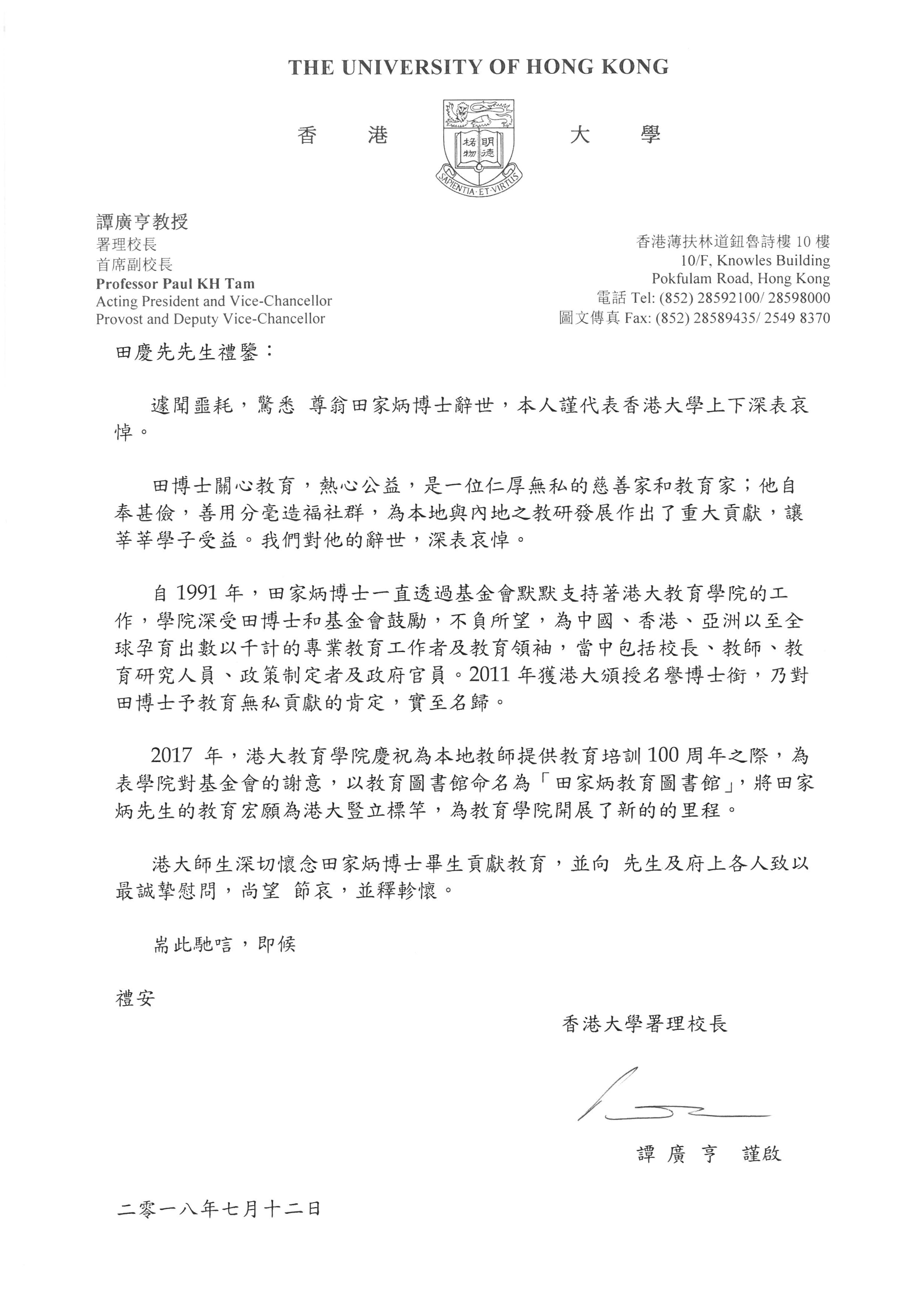 香港大學 譚廣亨署理校長 |