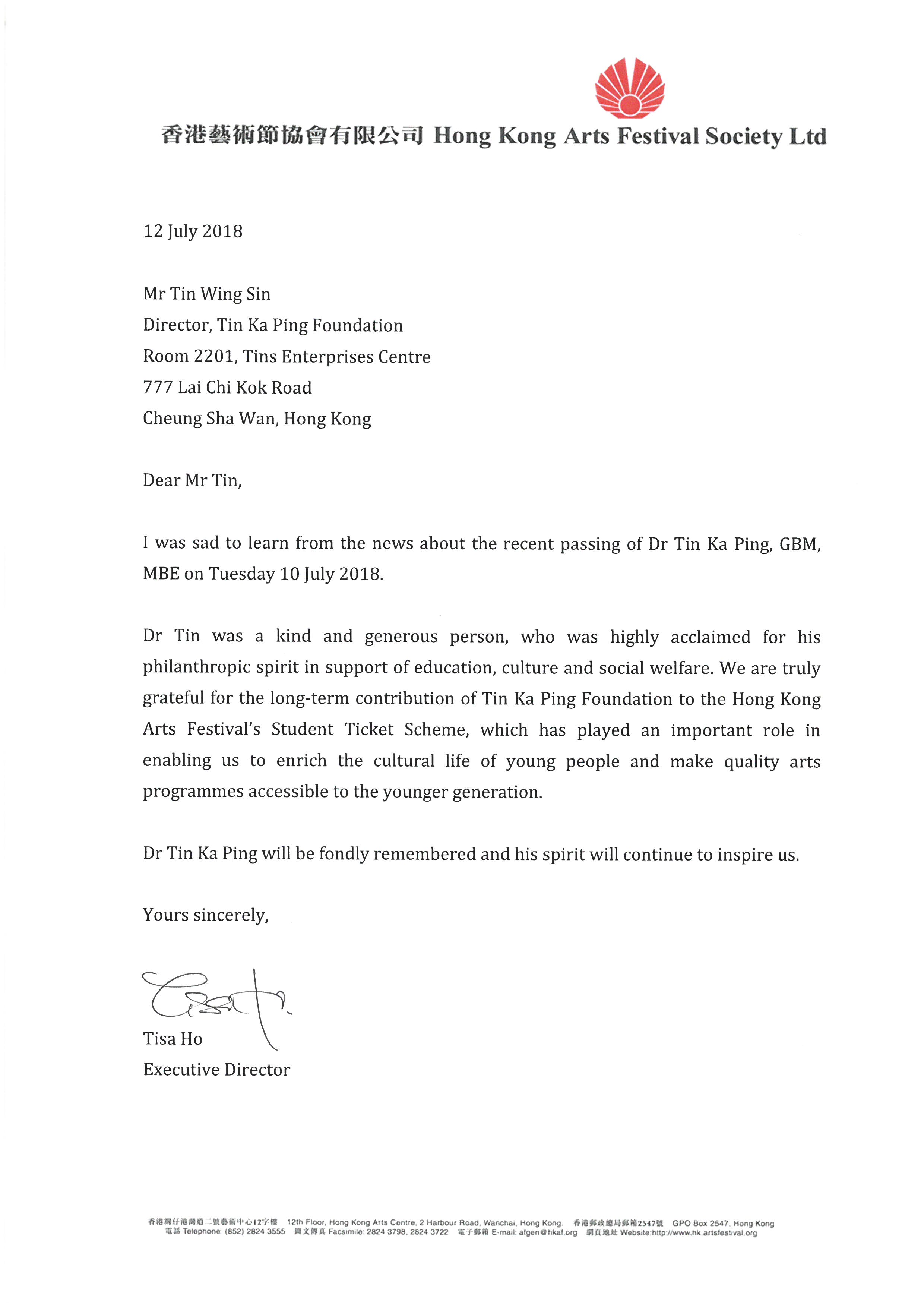香港藝術節協會有限公司 Tisa Ho |